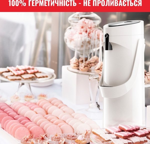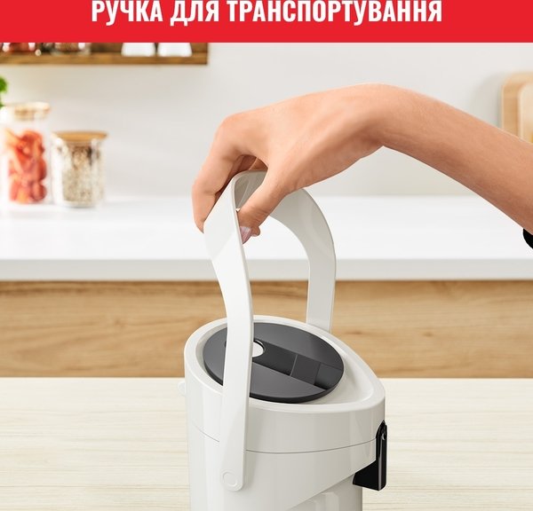 Завдяки продуманому і сучасному дизайну термос забезпечує максимальний комфорт для наповнення і подачі напоїв, а також ідеально підійде для будь-якого випадку. Термос простий і зручний у використанні, а завдяки технології Comfort Press - він максимально комфортний і ергономічний. Удосконалена технологія ізоляції підтримує оптимальну температуру напоїв: до 12 годин - для гарячих напоїв і до 24 годин - для холодних напоїв. Великий об'єм помпи продуманий для зручності під час наливання, щоб щоразу радувати вас смачними гарячими напоями ідеальної температури. Завдяки простоті в очищенні та зручності в транспортуванні, універсальній великій місткості 1,9 л і простому процесу наповнення, термос стане в пригоді на всі випадки життя - для зручної подачі улюблених гарячих напоїв.