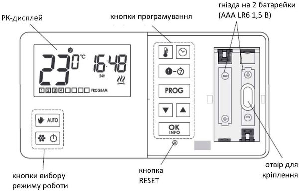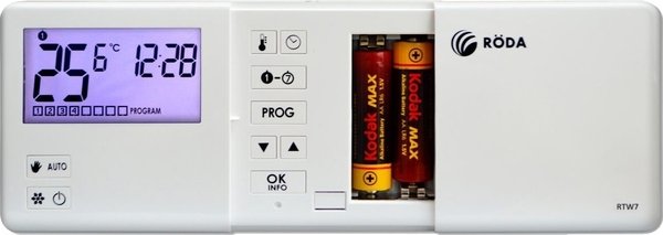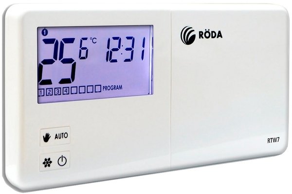 Це бездротовий тижневий програматор для газового, електричного котла та інших типів нагрівальних приладів. Пам'ять цього термостата може зберігати до восьми програм для робочих днів, восьми - для суботи і стільки ж для неділі. Це дає змогу дуже точно планувати температуру будинку залежно від часу доби та дня тижня, а також значно економити енергоносії.