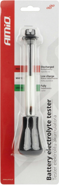 Ареометр Amio 01249 - вимірювальний прилад, призначений для виміру щільності акумуляторної рідини в батареях, що дасть змогу дізнатися про стан акумулятора та подовжити його робочий цикл. Цей ареометр дає змогу встановити якість акумуляторної рідини, що дасть змогу уникнути швидкого розряду акумулятора.