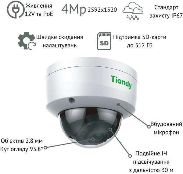 Опис IP-Камера Tiandy TC-C34KS 4МП
