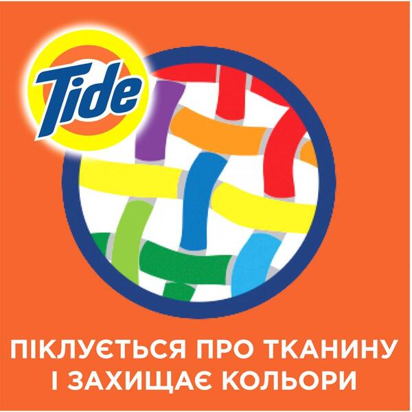 Гель для прання Tide дає змогу підтримувати одяг усієї родини у чудовому стані. Гель для прання Color від Tide — це ефективність очищення й особлива технологія, яка зберігає насичений колір прання за пранням. Результат — бездоганна чистота навіть кольорових речей. Вам більше не доведеться відправляти одяг на дачу — унікальний гель Tide поверне йому колишній зовнішній вигляд.