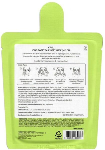 Тканинна маска для обличчя A'Pieu Icing Sweet Bar Диня 21г