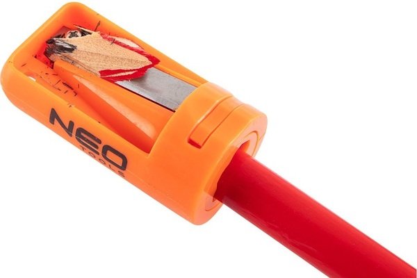 Точилка для технічних олівців, 13-830, NEO, пристосування для заточування олівців з овальним перетином. Підходить для більшості олівців для столярних робіт, робіт муляра та роботи зі скла. Лезо точила виготовлено зі сталі. Невеликий розмір дозволяє завжди носити його із собою.