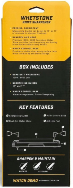 Точилка Work Sharp Benchtop Whetstone - це точильний камінь з подвійною зернистістю, керований під кутом, для заточування ножів та інструментів з тонкими краями.