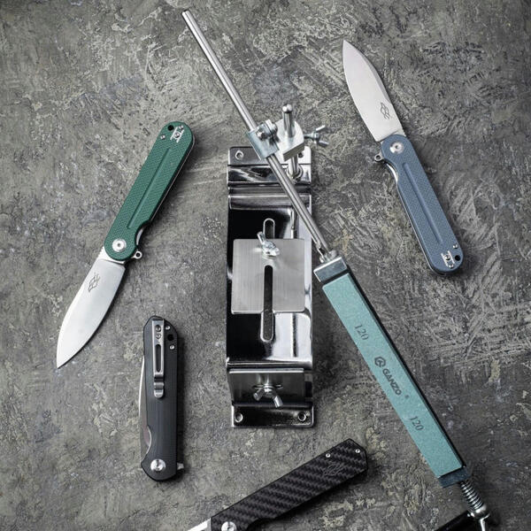 Ganzo Touch Steel призначена для стаціонарного використання. На підставі точила навіть передбачені отвори під болти для кріплення на столі або на дошці. У цьому випадку, положення тятиви буде жорстко зафіксовано, а будь-яке її ковзання під час роботи — виключено. Але і транспортування точильного інструменту також не представляє проблем. Модель Touch Steel має досить компактні розміри в складеному стані завдяки тому, що її напрямна розбірна і складається з двох окремих деталей і ручки. Зберігати точило можна у вхідному в комплект чохлі.