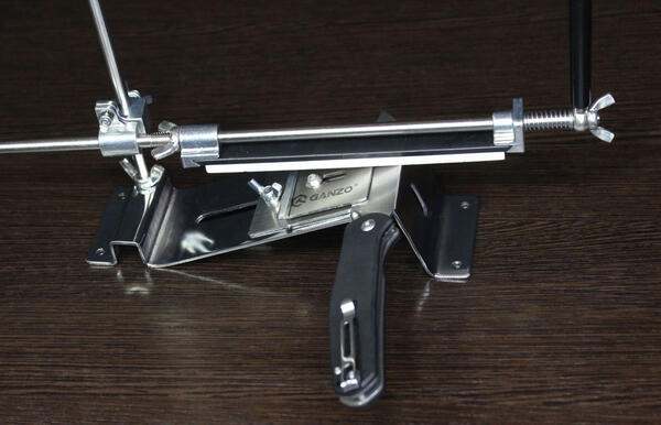 Інструмент під час заточування можна зафіксувати притискною пластиною в горизонтальному або вертикальному положенні. Користувачі з достатнім досвідом роботи можуть утримувати клинок в необхідному положенні самостійно.