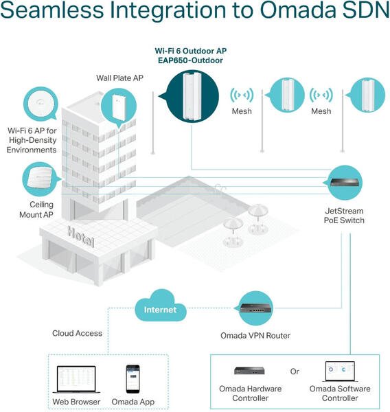 Інтеграція Omada SDN керує всією мережею локально або з хмари.