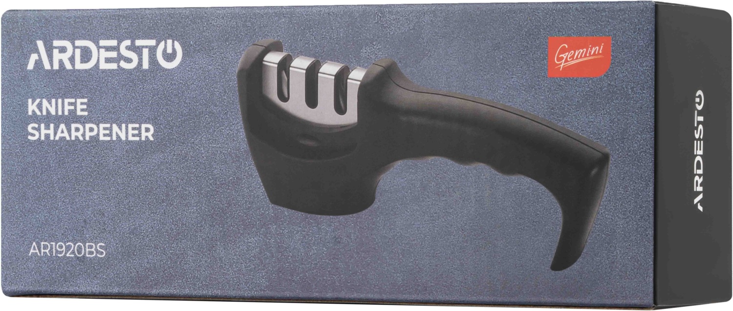 - Точилка для ножів ARDESTO Gemini, 20.5x5.5x7.5см, вольфрамовий сплав, пластик, чорний (AR1920BS)