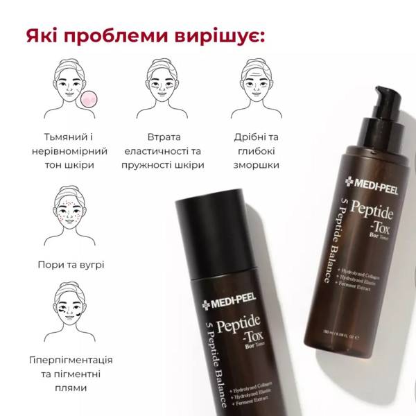 - Комплекс із 5 пептидів (Copper Tripeptide-1, Acetyl Hexapeptide-8, Palmitoyl Pentapeptide-4, Palmitoyl Tetrapeptide-7, Palmitoyl Tripeptide-1): сприяє зміцненню контурів обличчя, підвищенню загального тонусу шкіри, зміцненню колагенових волокон.