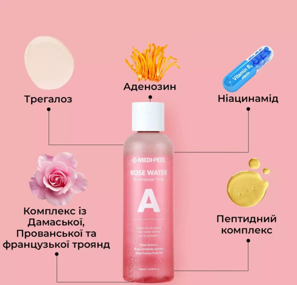 Тонер Medi-Peel Rose Water Bio Ampoule Двофазний з екстрактом троянди 500мл