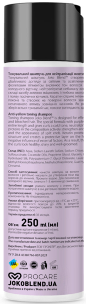 - Тонувальний шампунь Joko Blend Anti-Yellow для нейтралізації жовтизни 250 мл