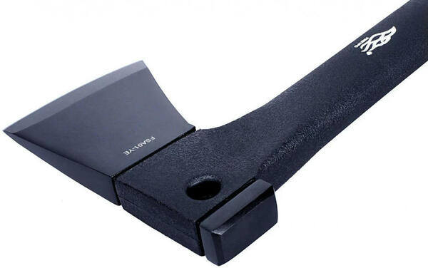 Головний інструмент набору — саме сокира. Він найбільший за розмірами — 34,7 см по довжині, з шириною ріжучої кромки 8 см. Для його виготовлення використана сталь 3cr13. А додатковим захистом від корозії стало темне покриття на поверхні металу, яке не стирається в процесі експлуатації сокири. Держак цього інструменту зроблений з нейлону, укріпленого за рахунок скловолокна. При тому, що він має високу міцність, ручка залишається дуже легкою. До того ж вона порожня зсередини, що дозволяє зберігати в сокирі наступний елемент комплекту — ручну пилку.