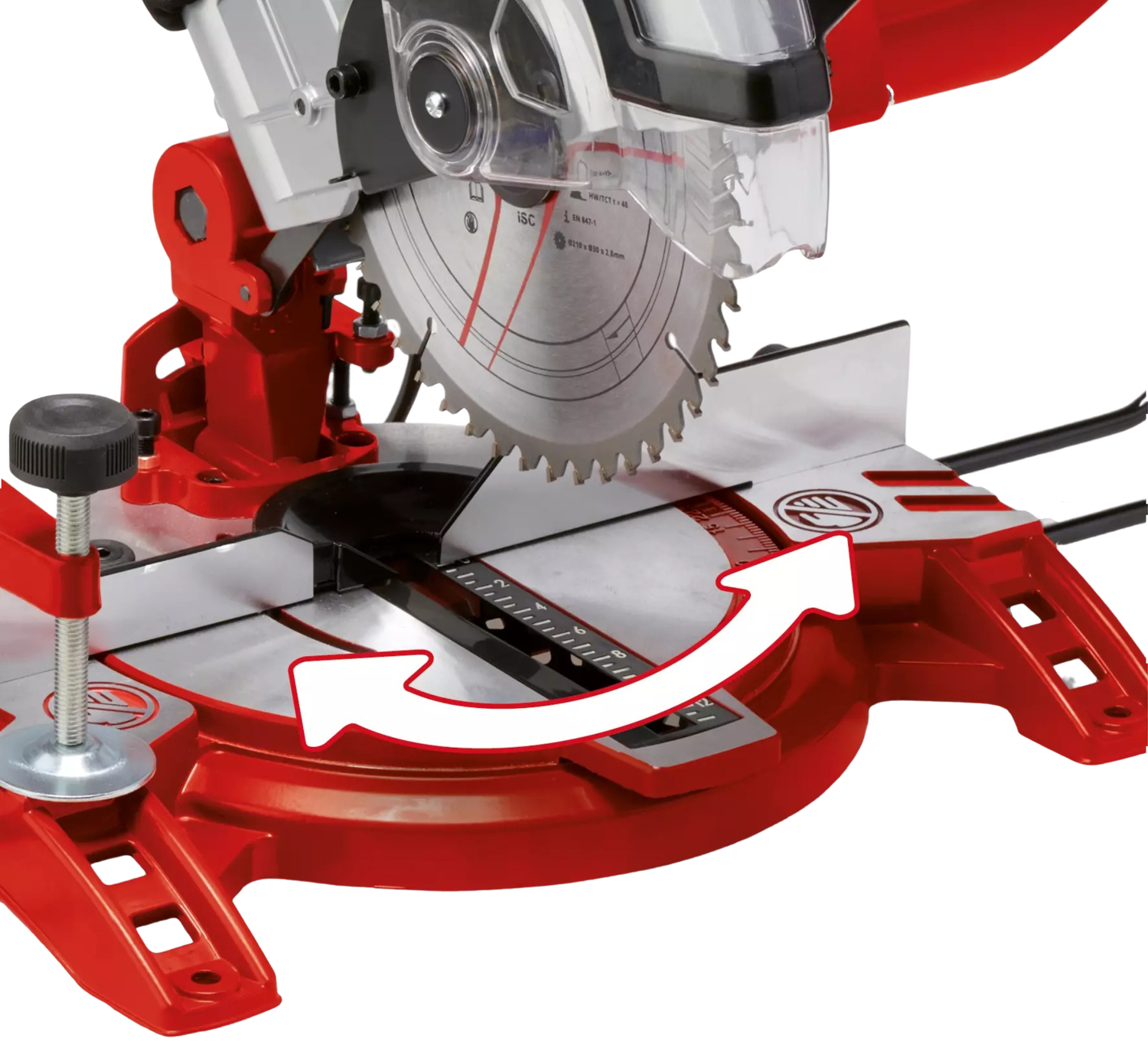 Зручна система блокування шпинделя дозволяє замінити пильне полотно діаметром 210 мм всього одним натисканням кнопки.
