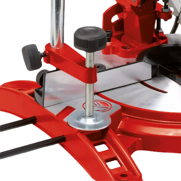 Торцювальна пила оснащена боковими упорами для матеріалів, які надійно тримають навіть довгі деталі, забезпечуючи стійкість та високу точність кожного різу.