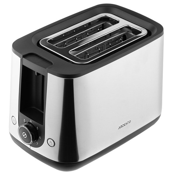 Хороший тостер, выглядит дороже своей цены за счёт корпуса из нержавеющей стали. Тосты зажаривает хорошо, от слегка поджаренного на 1 до тёмно-жёлтого на 7. ничего не клинит, всё работает как надо
