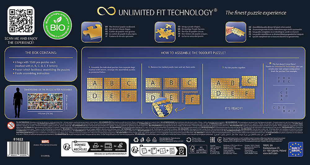 Пазли - прекрасна головоломка для дітей та дорослих, яка допоможе з користю провести час. Пазли Trefl - це яскраві та чіткі кольори та високий рівень поліграфії. Висока якість пазлів досягається завдяки використанню щільного картону. Збирання пазлів розвиває дрібну моторику, мислення та увагу. Пазл складається із 9000 деталей та містить зображення з героями легендарного всесвіту Marvel Avengers. Після складання вийде картина розміром 198,6х92,8 см.