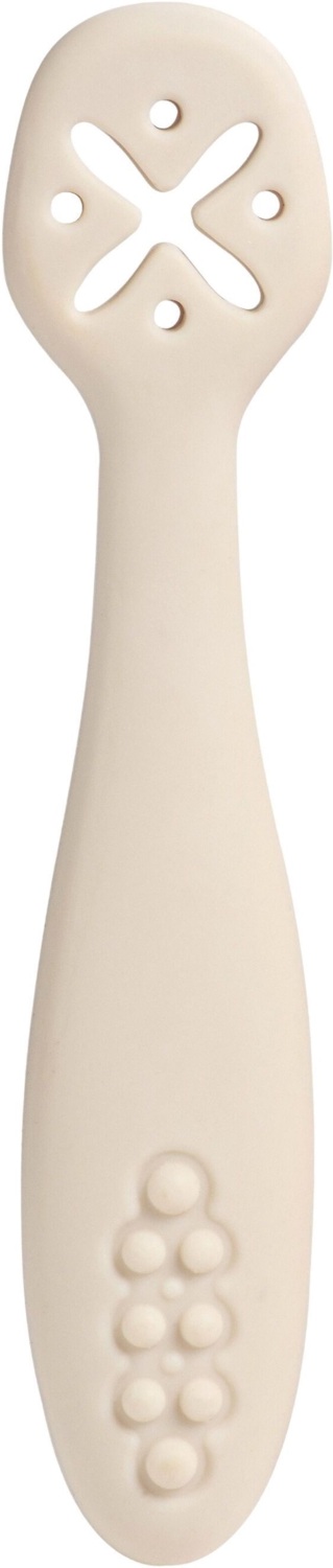 - Ложка з текстурованим плоским краєм ідеально підходить для перших знайомств з густим пюре. Може використовуватися для зішкрібання залишків їжі зі стінок посуду.