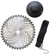 | Комплектація (можливі зміни в різних поставках) | Документація, Захисний кожух, Котушка з волосінню, Ключ, Комплект кріпильних елементів, Ніж, Плечовий ремінь, Рукоятка, Тример |