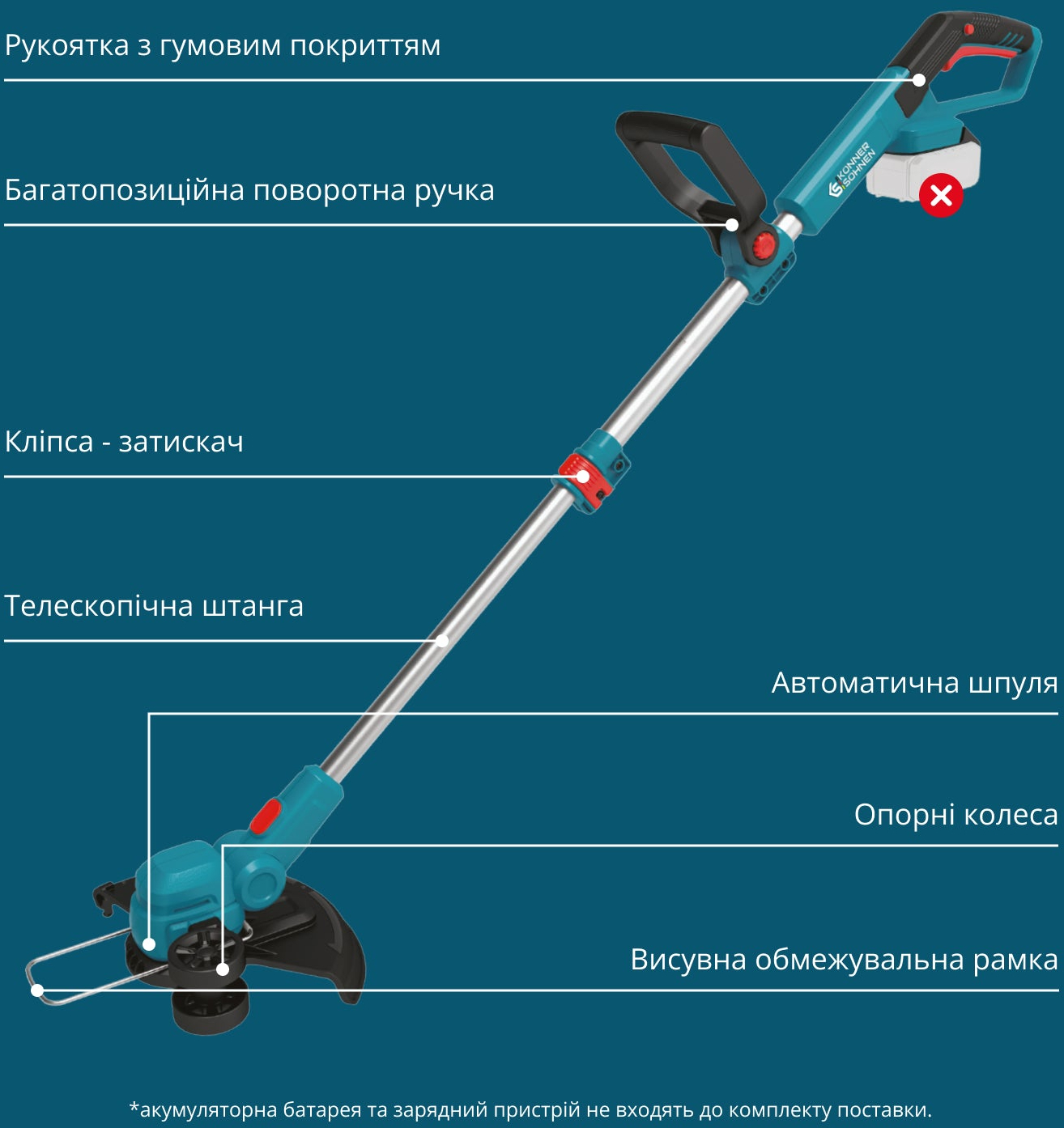 - Тример садовий акумуляторний Konner&Sohnen KS CST-20V 20В (без АКБ та ЗП), (KSCST-20V)