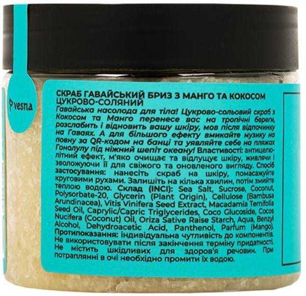Цукрово-сольовий скраб Vesna Гавайський бриз з манго та кокосом 450 г