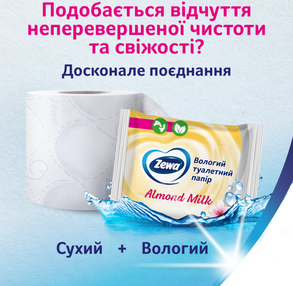 - Туалетний папір вологий Zewa Almond Milk moist 42 шт