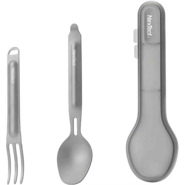 - Туристичний набір ложка-виделка NexTool Titanium Tableware Set титан