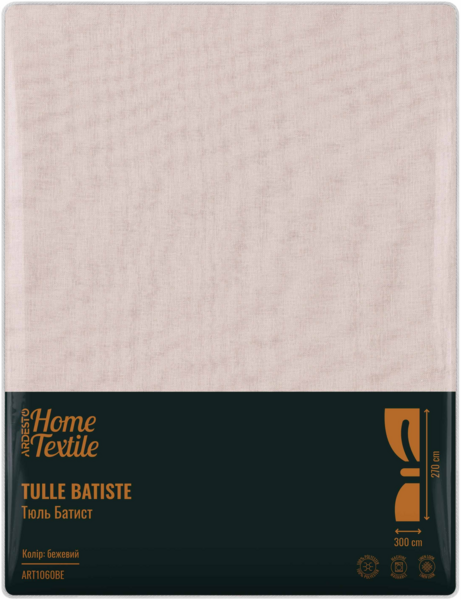 - Тюль ARDESTO 300х270см, батіст, 100% поліестер, бежевий B1 (ART1060BE)