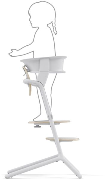 - Оригінальна конструкція переносить вагу на нижню частину стільця Lemo, забезпечуючи стабільність. Вище захисне кільце підтримує спину дитини.