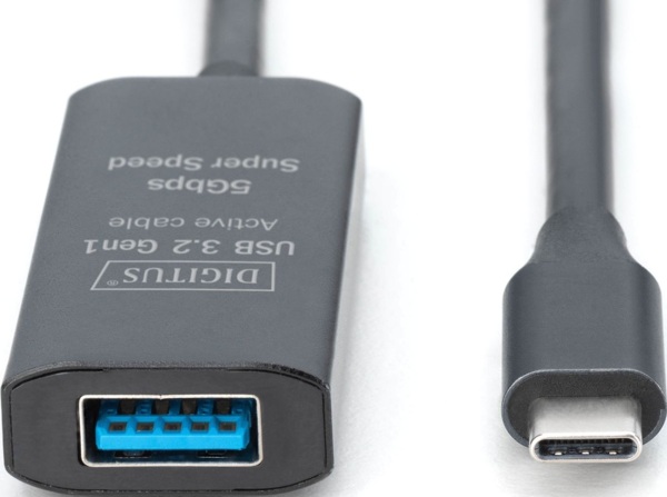 - Подовжувач Digitus USB 3.2 Gen1 Active Cable 5G, C/M-A/F, 10m, Black (DA-73111)