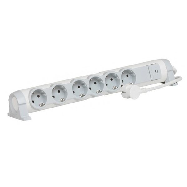Многорозеточний блок Легранд оснащений вимикачем з індикацією. Розеткові гнізда розташовані під кутом, що дуже зручно при підключенні великої кількості вилок. Передбачена можливість кріплення подовжувача до стіни, робочої поверхні столу, меблів. Перетин кабелю живлення 3х1,5 мм кв.