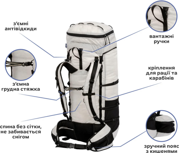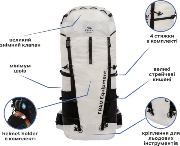 Ультралегкий рюкзак для експедицій, де важлива мінімальна вага спорядження. Відмінно підійде як для сходжень будь-якої складності, так і для технічного туризму.