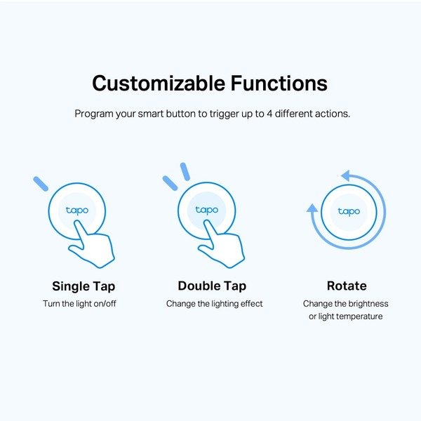 Запрограмуйте свою розумну кнопку, щоб запускати до 4 різних дій з елементами керування одним дотиком, подвійним дотиком і обертанням.