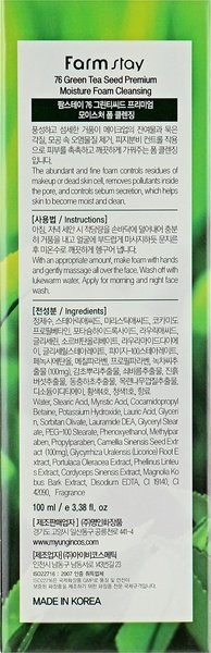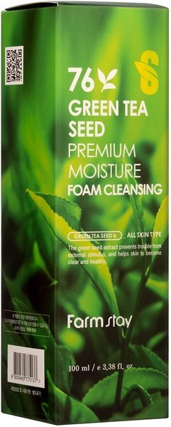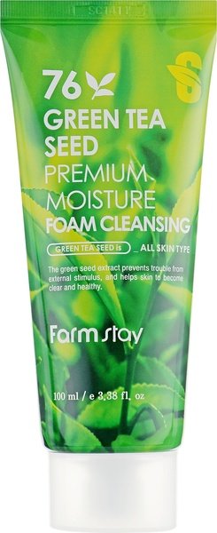 - Пінка для вмивання FarmStay Green Tea Seed Premium Moisture Foam Cleansing з насінням зеленого чаю 100мл