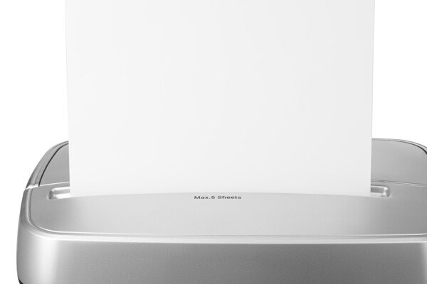 Знищувач документів і кредитних карт з ручкою для транспортування. Приймач розрахований на одночасне знищення до п'яти аркушів А4. Для зберігання відходів передбачений зручний контейнер на 12,5 л. Управління реалізовано за допомогою трьох режимів – Авто, Реверс, а також постійна робота. Тип різання – перехресний, а розмір знищеного паперу – 4х35 мм.