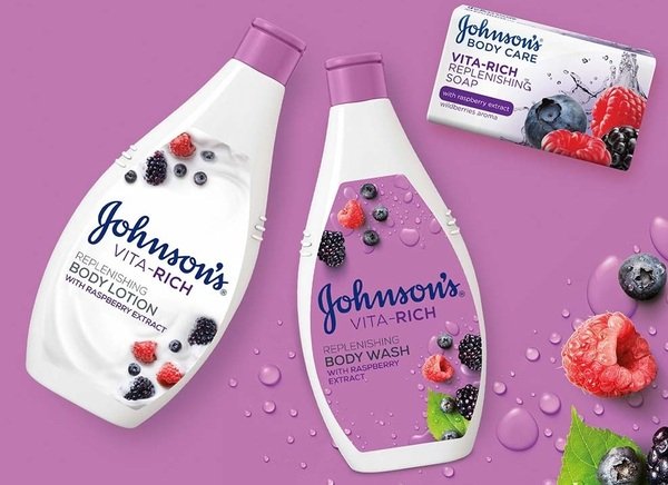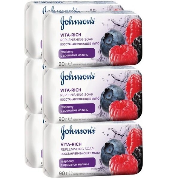 Відновлювальне мило Johnson's Body Care Vita Rich з екстрактом малини та захисною олією, що має аромат лісових ягід, активно очищає, допомагає відновлювати шкіру, не пересушує її, а також надає їй здорового вигляду та відчуття свіжості. Відчуйте справжню турботу з милом Johnson’s! Лінійка Care Vita Rich увібрала багаторічний досвід бренду задля досконалого догляду за шкірою. Максимум задоволення під час кожного приймання душу також принесе соковитий аромат продукту та «смачний» дизайн паковання. Мило під час контакту з водою утворює ніжну піну, яка чудово очищає тіло від забруднень. Багаті зволожувальні компоненти допомагають відновити гідробаланс шкіри, пом’якшують і не пересушують її. Рослинні екстракти у складі чинять відновлювальну дію. Мило дарує відчуття чистоти й легкості, наповнює енергією та огортає тіло неймовірним освіжальним ароматом.