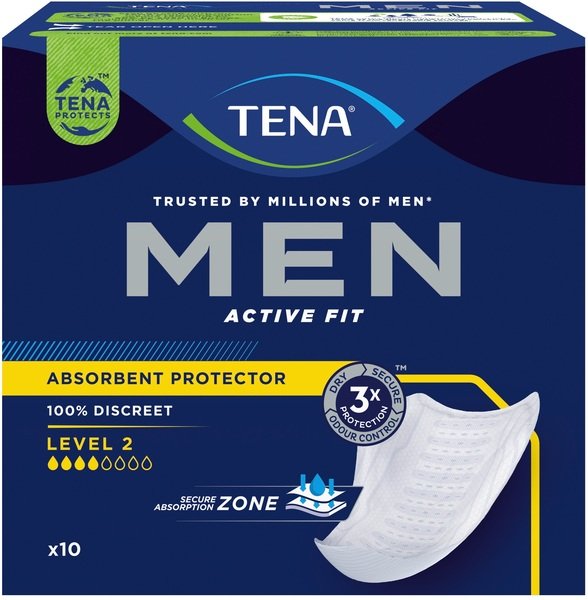 Tena Men Active Fit Level 2 — це надійний і водночас непомітний захист для чоловіків із середнім рівнем нетримання сечі. Завдяки потрійному захисту прокладки ефективно запобігають протіканням, утримують вологу та нейтралізують неприємний запах. Спеціальна анатомічна форма у вигляді чаші (спортивної мушлі) забезпечує ідеальне прилягання та комфорт протягом усього дня. Надійна зона поглинання швидко абсорбує рідину, гарантуючи відчуття сухості, а завдяки товщині лише 4 мм прокладки залишаються абсолютно непомітними під одягом. Клейка смужка надійно фіксує їх на білизні, тож ви можете рухатися впевнено без жодних обмежень. Індивідуальне пакування робить їх зручними для використання в будь-якій ситуації — вдома, на роботі чи в спортзалі. Живіть активним життям без компромісів із Tena Men Active Fit Level 2!