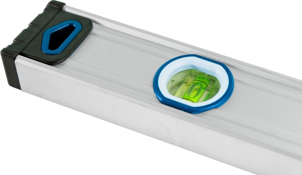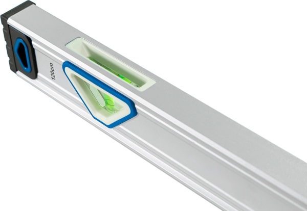 Професійний рівень довжиною 120 см забезпечує зручне використання. Його конструкція орієнтована на легке зчитування показань, що значно спрощує та пришвидшує робочий процес. Виняткова міцність та довговічність цього інструменту гарантуються завдяки міцному алюмінієвому корпусу, який надійно захищає внутрішні елементи від механічних пошкоджень. Блочні колби, ударостійкі торцеві кришки та структурована поверхня внизу забезпечують ергономічність. Протиковзкі наконечники гарантують стабільність під час використання.