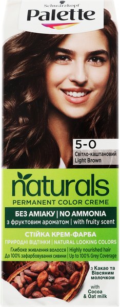 - Стійка крем-фарба для волосся Schwarzkopf Palette Naturals без аміаку 5-0 Світло-каштановий 110мл