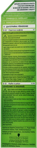 | Склад проявника | Aqua (Water, Eau), Hydrogen Peroxide, Cetearyl Alcohol, Propylene Glycol, Ceteareth-20, Steartrimonium Chloride, Paraffinum Liquidum (Mineral Oil, Huile Minérale), Etidronic Acid, 2,6-Dicarboxypyridine, Disodium Pyrophosphate, Potassium Hydroxide, Isopropyl Alcohol, Sodium Benzoate |
