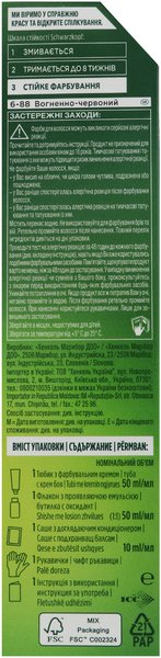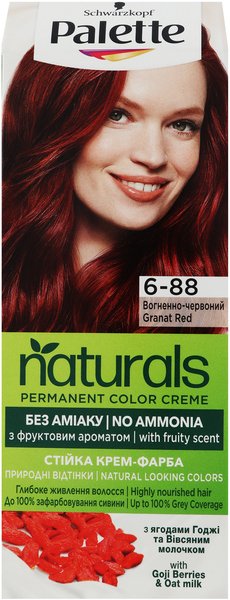 - Стійка крем-фарба для волосся Schwarzkopf Palette Naturals без аміаку 6-88 Вогняно-червоний 110мл