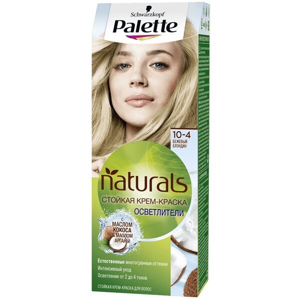 Блонд відтінки Palette Naturals зі спеціальними інгредієнтами освітлюють волосся від 2 до 4 рівнів. Органічні інгредієнти піклуються про ваше волосся зсередини. Кокосова олія у складі крем-фарби підкреслить природні колірні переливи по всій його довжині, а кондиціонер з аргановою олією надасть живлення та зволоження волоссю.