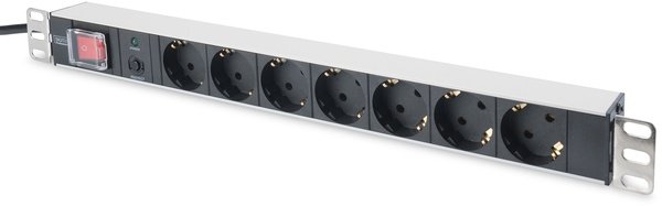 - Пристрій розподілу електроживлення DIGITUS 1U, 7xSchuko, 16A, 250V, вимикач, OLP, вилка Schuko