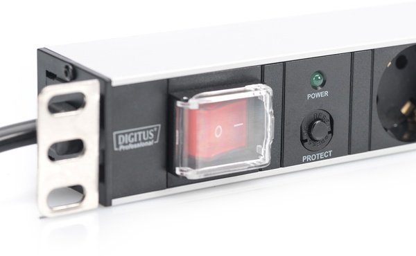 Пристрій розподілу електроживлення DIGITUS 1U, 7xSchuko, 16A, 250V, вимикач, OLP, вилка Schuko
