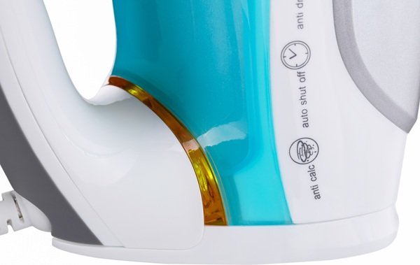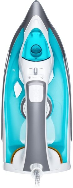 Праска в блакитному кольорі з потужністю 2200 Вт, керамічним покриттям підошви, резервуаром на 280 мл, функцією пари, а також захистом від накипу і системою "крапля-стоп".