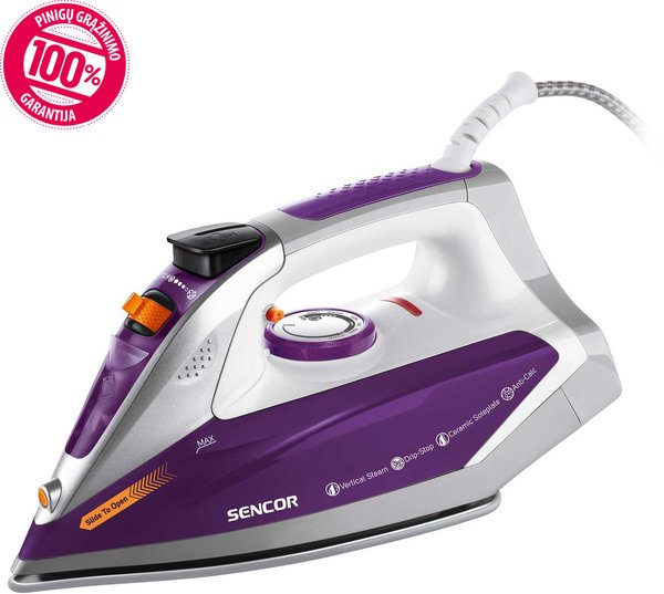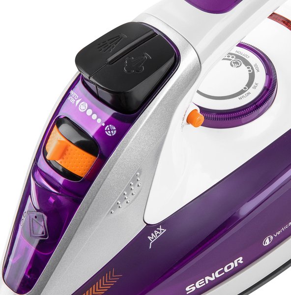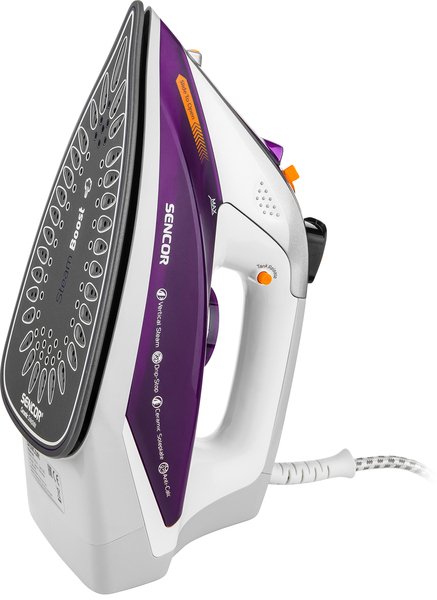 Sencor SSI8710VT - праска з високою потужністю і стильним дизайном, який поєднав у собі сучасність і строгість. Вона отримала ергономічну форму і ручку, які сприяють зручності її використання. Загострений носик підошви дає змогу розгладити всі куточки одягу.