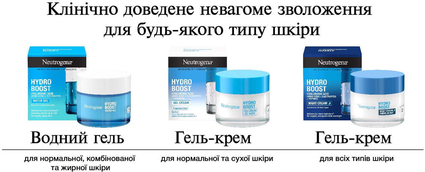 Схожі товари Зволожуючий гель-крем для сухої шкіри обличчя Neutrogena Hydro Boost 50 мл