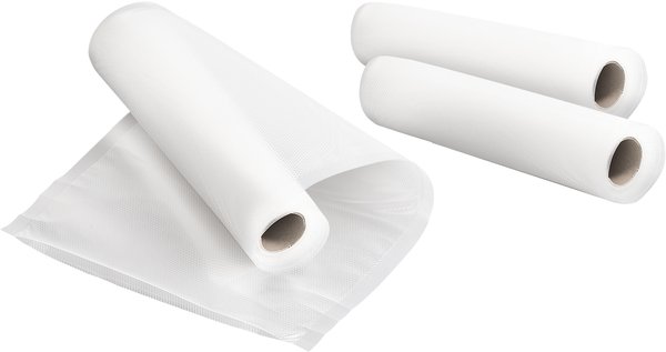 Уже не в первый раз покупаю здесь вакуумную пленку, просто такое же качество пленки по такой хорошей цене найти сложно в обычных магазинах. Нравится, что сама пленка в меру плотная, случайно не порвется, укутывает продукты отлично и они долго могут стоять свежими. Размораживаю продукты в микроволновке вместе с пленкой, при этом она прекрасно выдерживает температуру и продукты размораживаются качественнее, чем без пленки. В упаковке три рулона по двадцать метров каждый, так что ее хватает надолго.