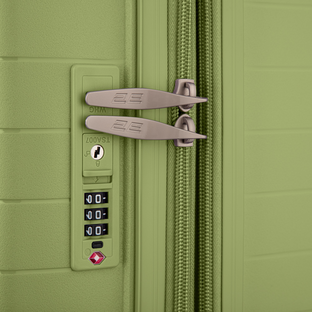 Колекція 2E Aero — поєднує в собі довговічність з екологічністю, а продуманий сучасний дизайн в парі з цікавими кольоровими рішеннями, зможе задовольнити найвищі ваші вимоги. Жорсткий корпус виготовлено з поліпропілену, що забезпечує надзвичайну міцність при мінімальній вазі. Усередині валізи передбачено розділювачі та регульовані пакувальні паски, для надійної фіксації ваших речей — це організовує та впорядковує поклажу, й тим самим забезпечується високий рівень як комфорту, так і безпеки, що разом роблять подорож ідеальною та безтурботною. Вбудований кодовий замок TSA надійно захистить ваш багаж і спростить проходження митного контролю. Завдяки легким подвійним колесам-спінерам ви зможете без зусиль рухатися в будь-якому напрямку, а висувна телескопічна ручка з алюмінію забезпечує оптимальне налаштування висоти в декількох проміжних положеннях. Система розширення дає змогу збільшити об'єм валізи, що точно стане в пригоді й неодмінно додасть місця для додаткових речей, чи покупок під час мандрівки.