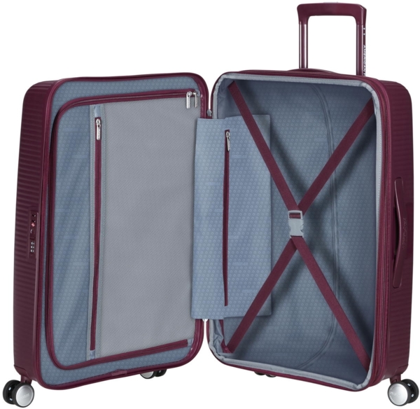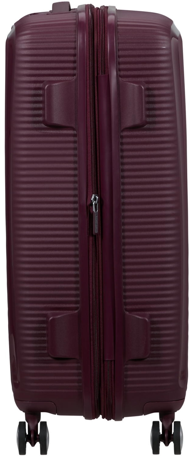 - Більше місця для вражень: це перша поліпропіленова валіза American Tourister на блискавці з функцією розширення. Після відкриття секції збільшується глибина корпусу та загальний внутрішній об’єм. Такий формат зручний для подорожей із додатковим багажем або зворотного перевезення покупок;