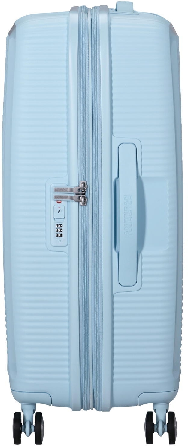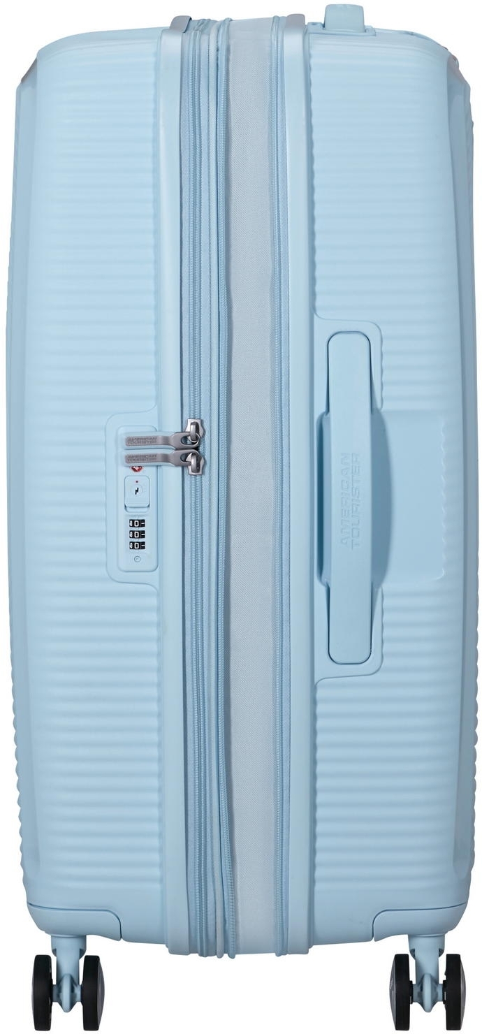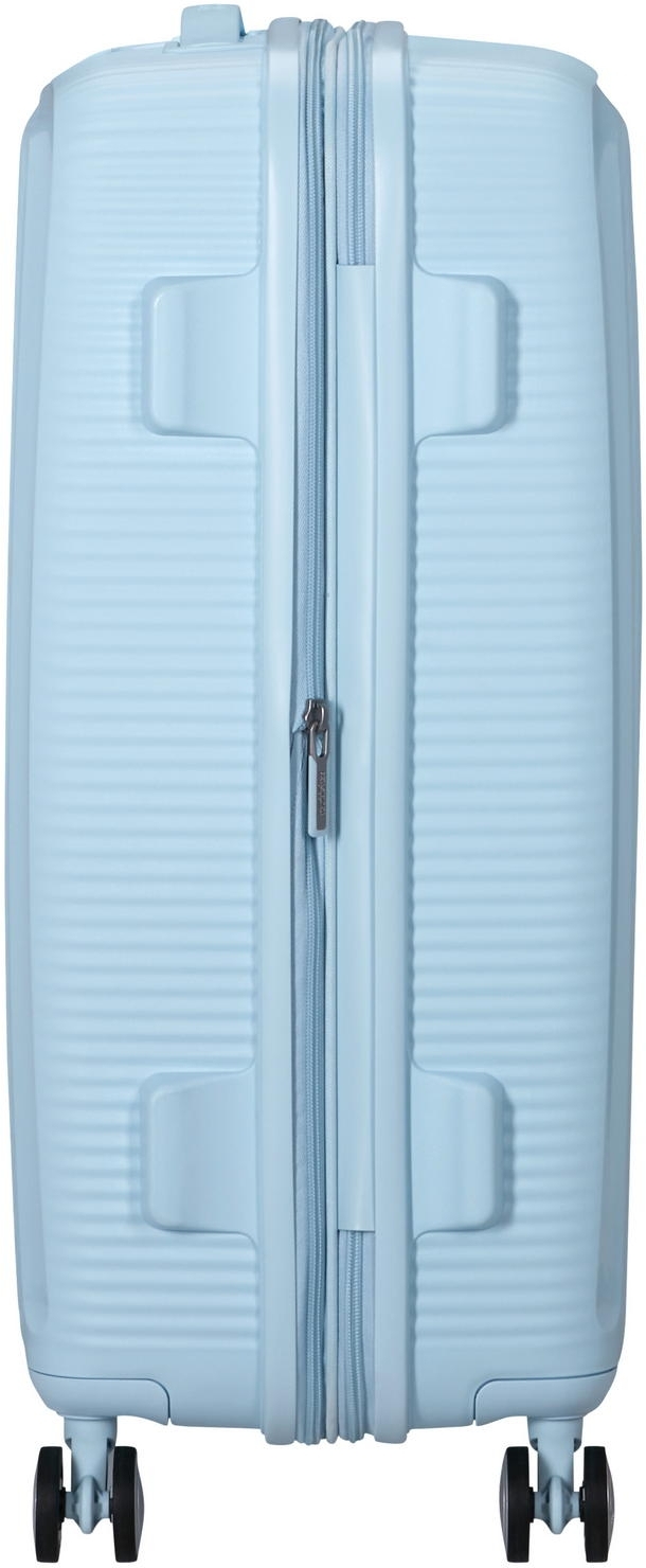 - Більше місця для вражень: це перша поліпропіленова валіза American Tourister на блискавці з функцією розширення. Після відкриття секції збільшується глибина корпусу та загальний внутрішній об’єм. Такий формат зручний для подорожей із додатковим багажем або зворотного перевезення покупок;